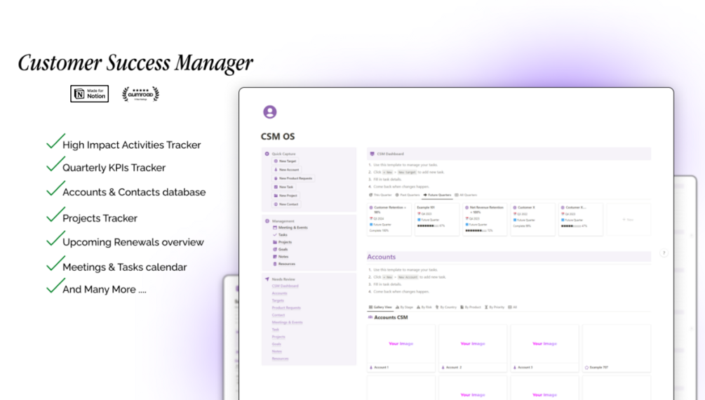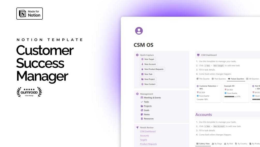 This isn’t just a dream. It’s possible with a custom Notion template designed specifically for customer success managers.