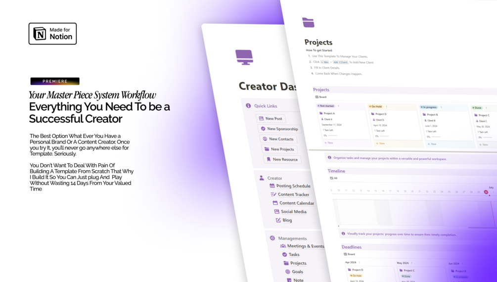 Designed with advanced databases and foolproof workflows, the "Notion Creator Dashboard" is your ticket to simplified success. Plug in, play, and watch your creativity flourish like never before.