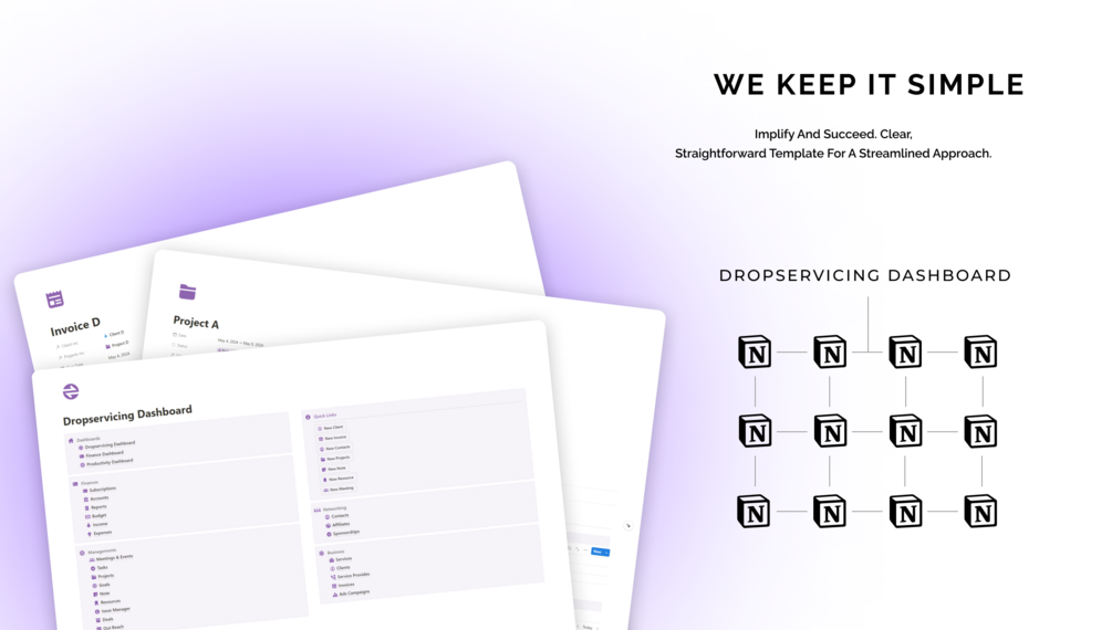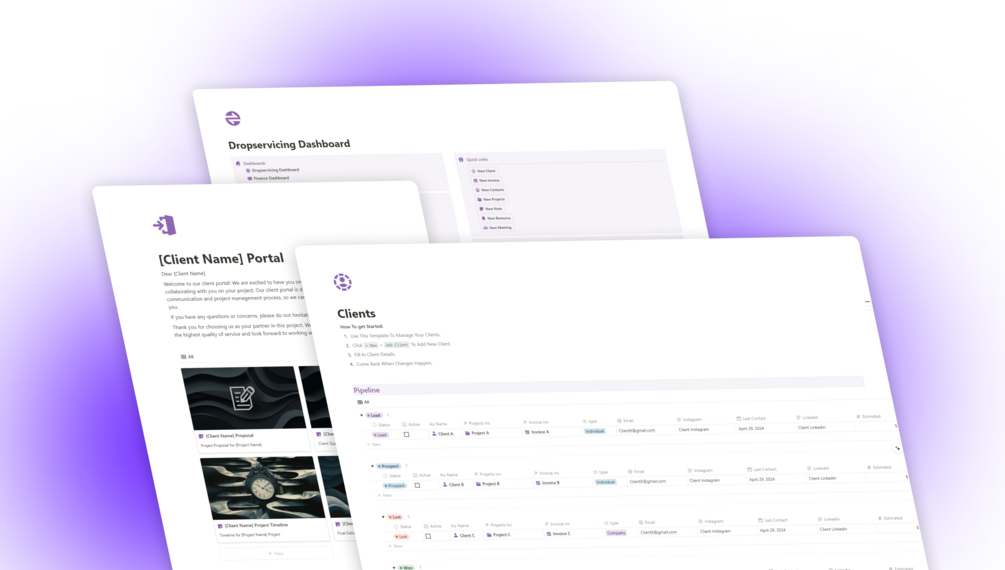In the dynamic world of dropservicing, efficiency is the linchpin of success. This Notion template serves as your ally, transforming complexity into clarity. Streamline your operations, enhance collaboration, and elevate your dropservicing game.