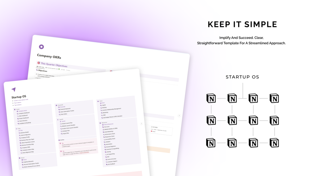 - Starting a new venture can be a daunting task, and managing it can be even more challenging. That's why I'm excited to share Notion Startup OS with you, an all-in-one solution designed to make your startup journey more manageable.