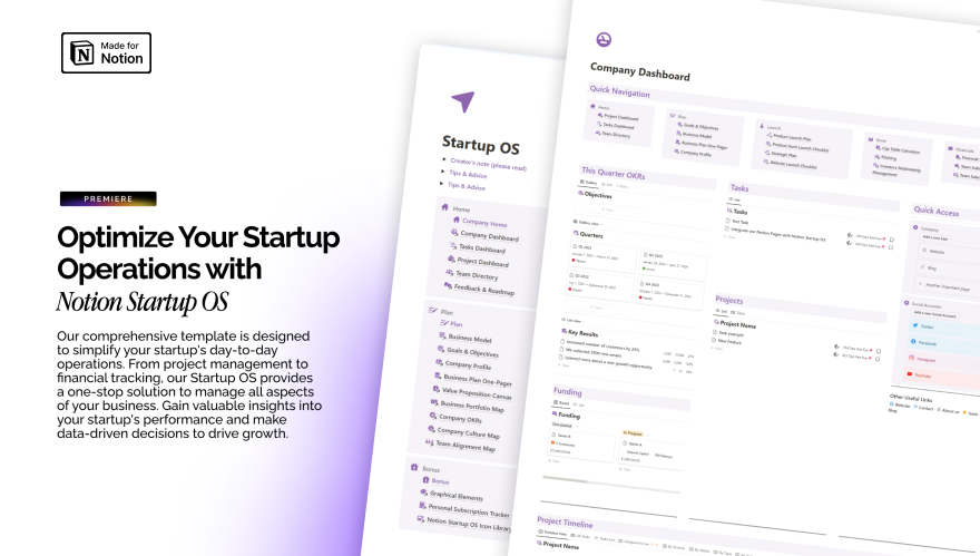 - Starting a new venture can be a daunting task, and managing it can be even more challenging. That's why I'm excited to share Notion Startup OS with you, an all-in-one solution designed to make your startup journey more manageable.